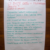 Po skončení přednášky a zodpovězení doplňujících otázek začala druhá část večera. Účastníci mohli dávat své vlastní nápady a návrhy na zlepšení vzdělávání v Trutnově. Postupně padaly připomínky jak ze strany kantorů, tak i rodičů. Finálním bodem programu bylo subjektivní ohodnocení důležitosti jednotlivých návrhů.